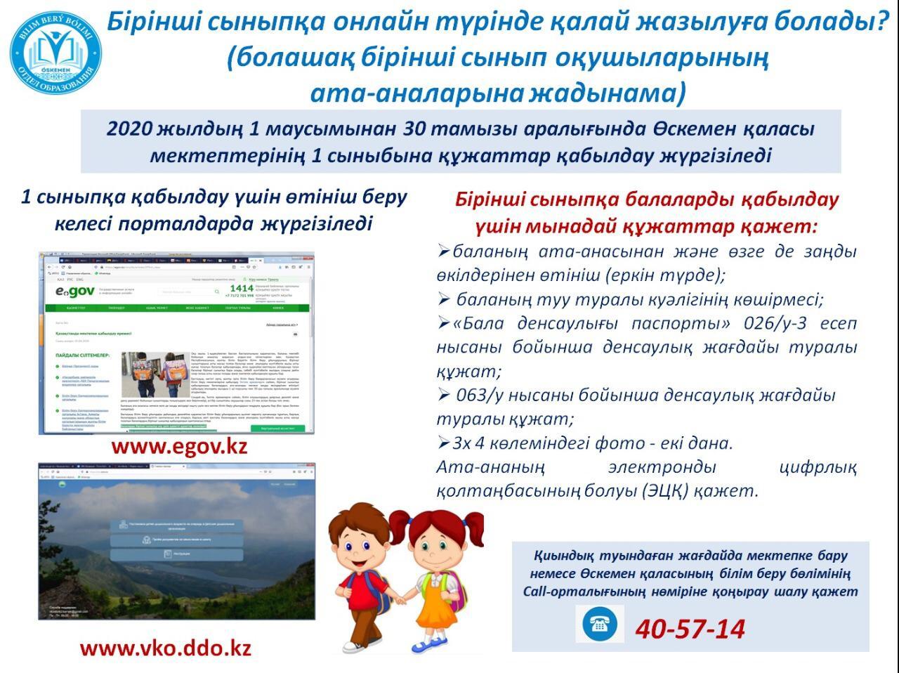 Приём документов в 1 класс » КГУ "Основная средняя школа №14" отдела образования по городу Усть-Каменогорску управления образования ВКО