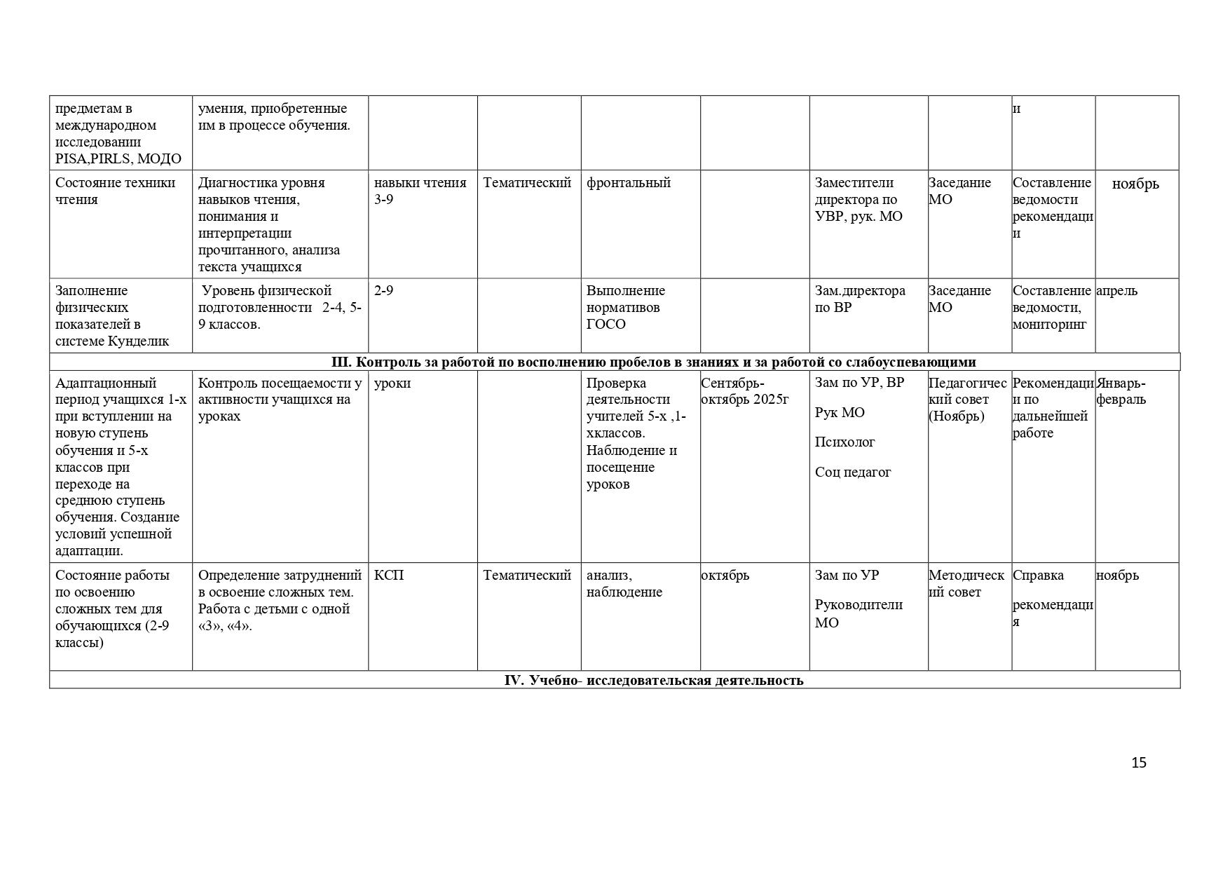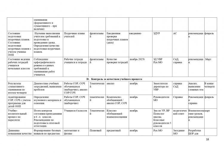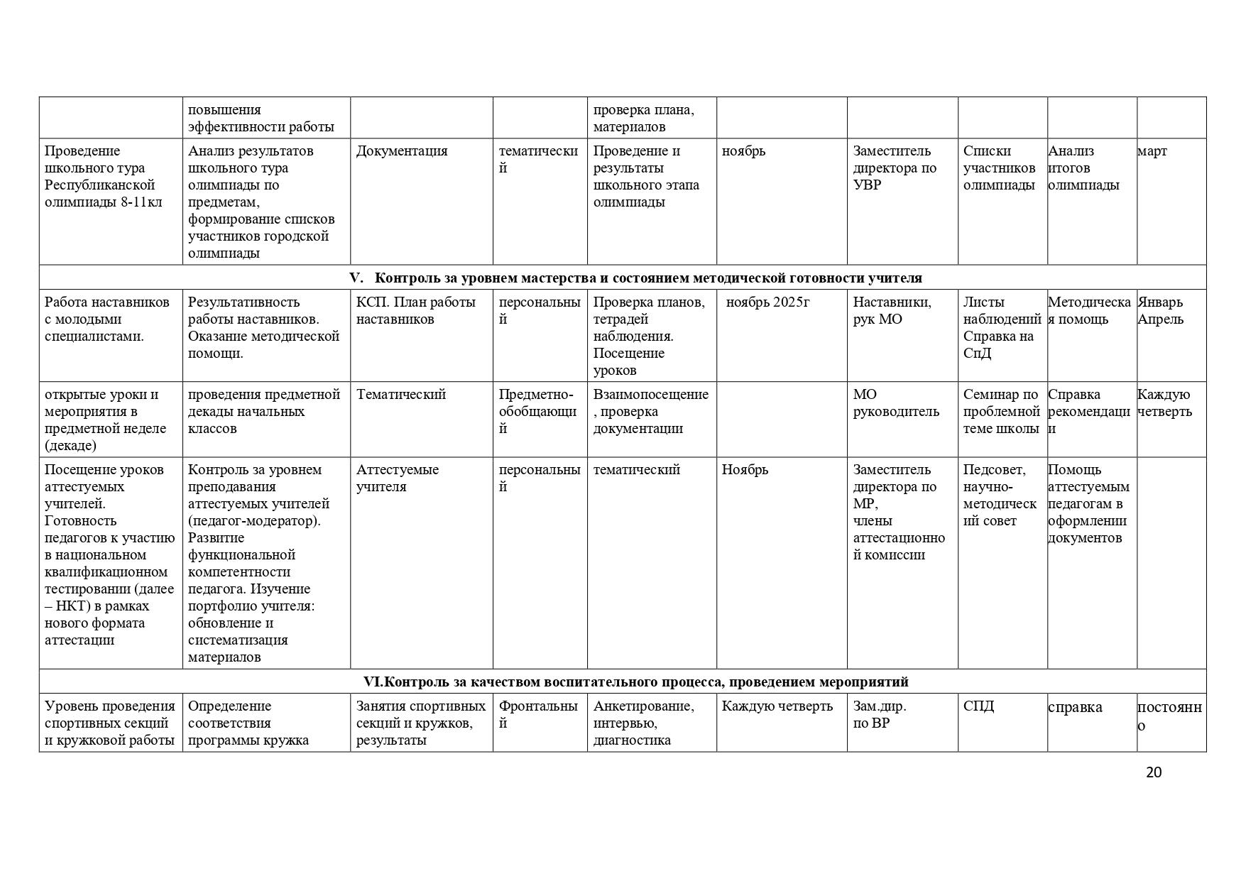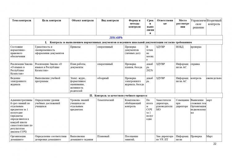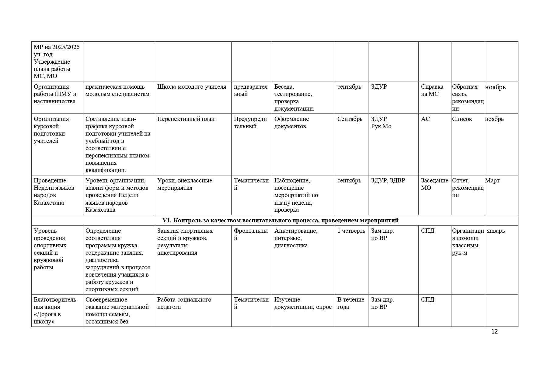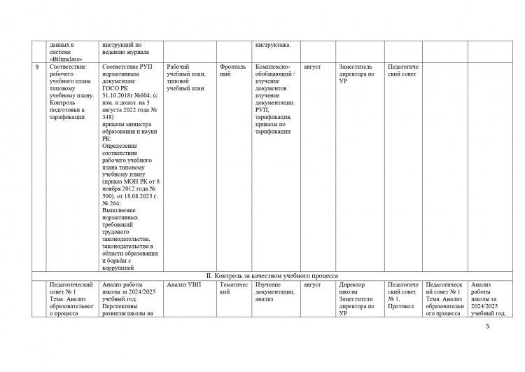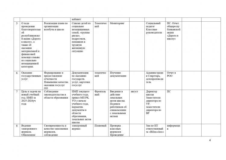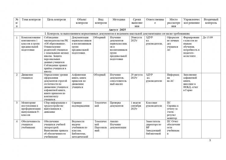 01 сентябрь 2025 0 1 2 3 4 5 2025-2026 жылдарға арналған мектепішілік бақылау жоспары План внутришкольного контроля на 2025-2026 год