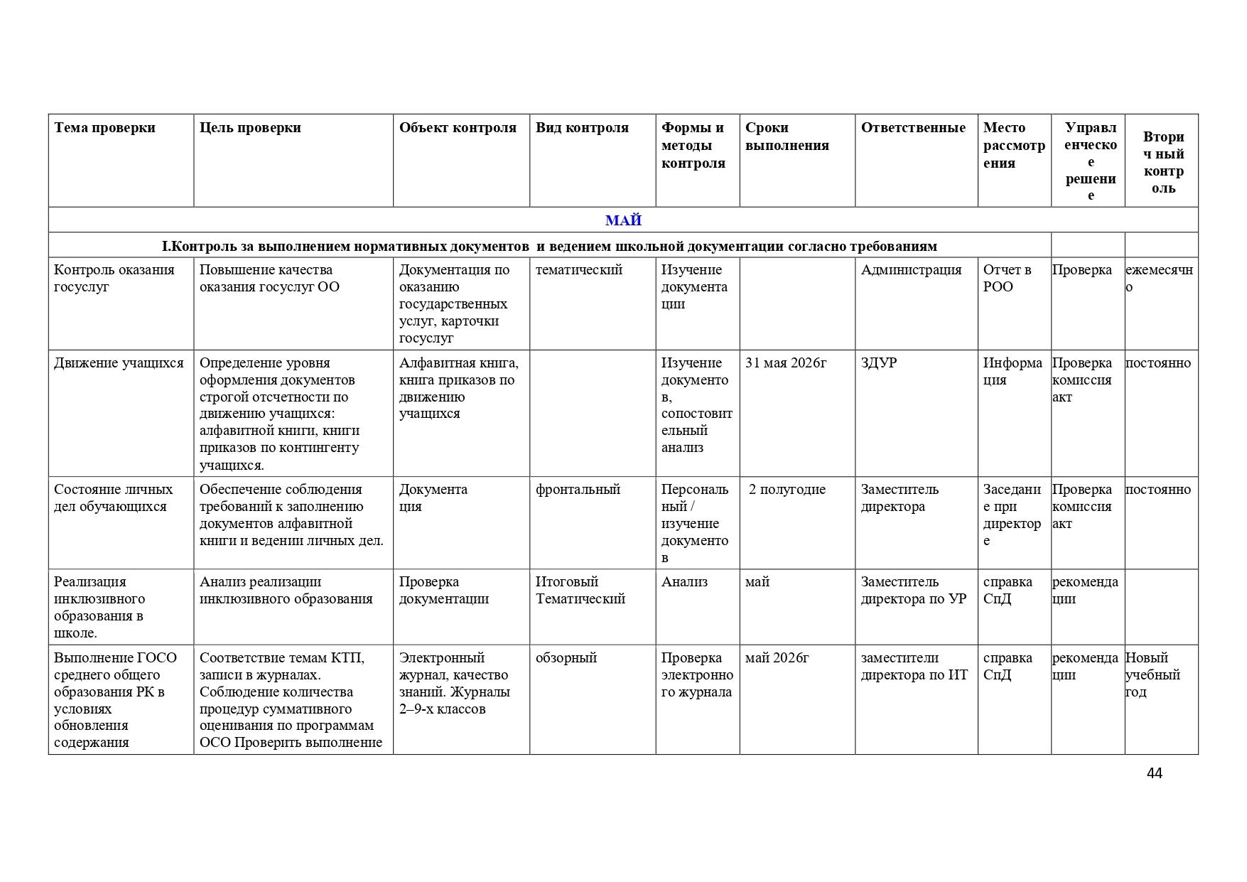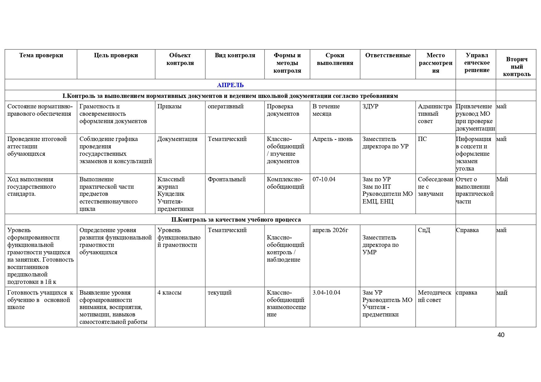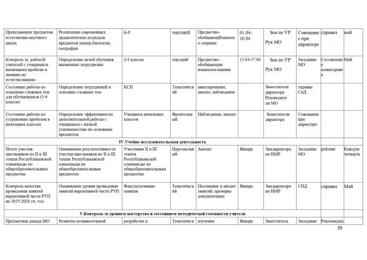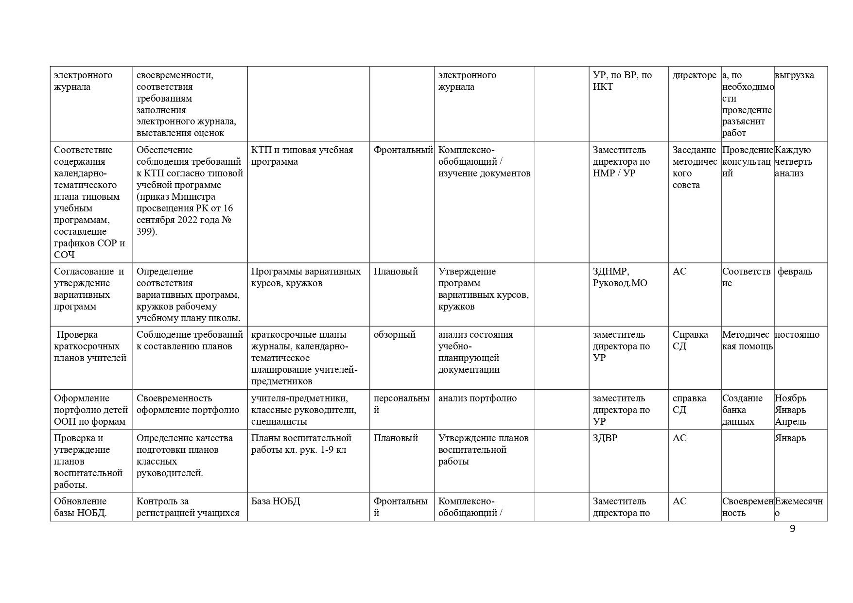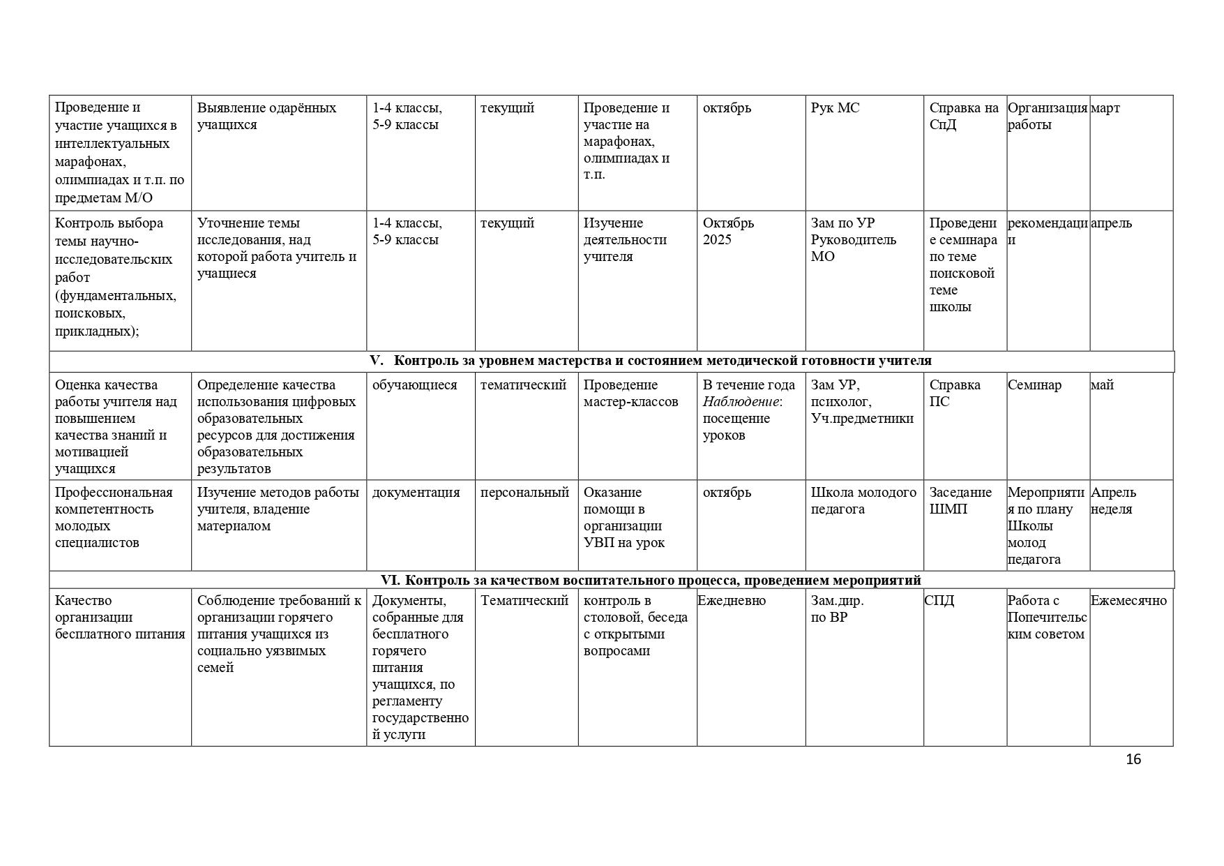 01 сентябрь 2025 0 1 2 3 4 5 2025-2026 жылдарға арналған мектепішілік бақылау жоспары План внутришкольного контроля на 2025-2026 год