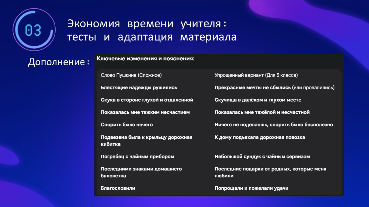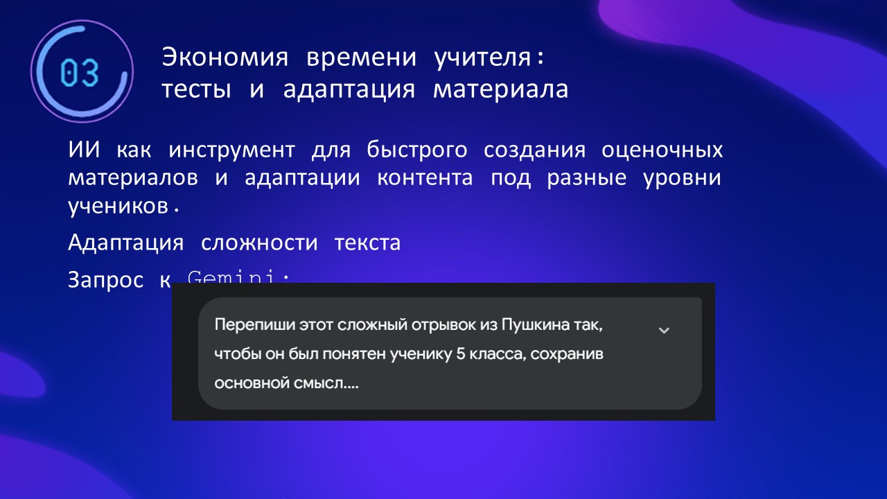 Планирование: ИИ-помощники могут генерировать планы уроков, подбирать дидактические материалы и составлять расписание.