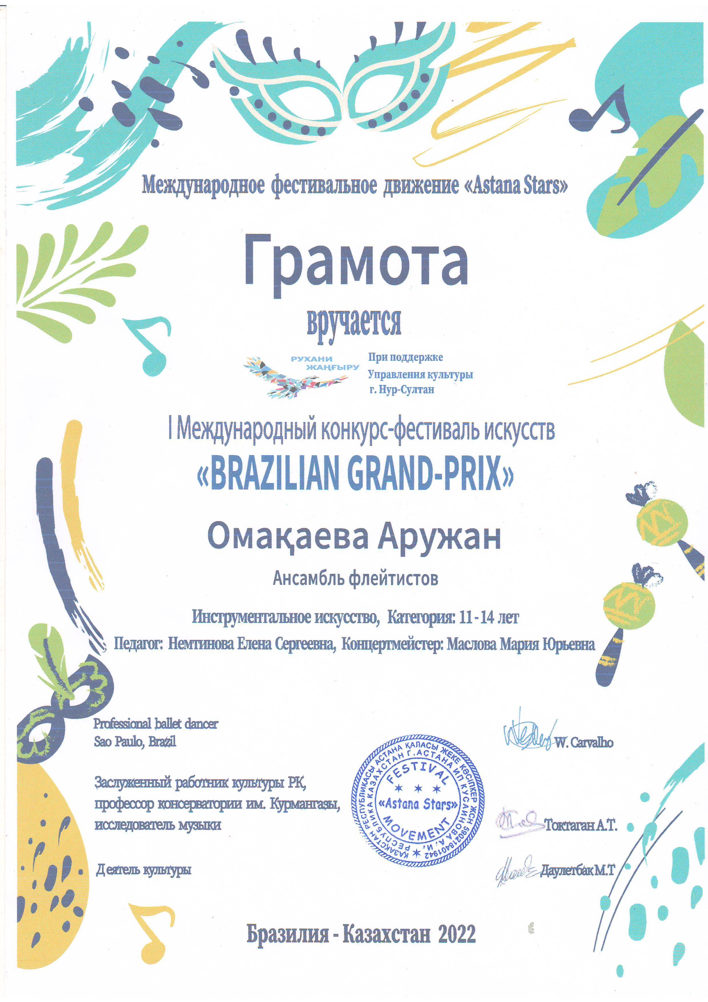 21.03.2022 Халықаралық өнер фестивалі байқауының жеңімпазы - Победитель Международного конкурса Фестиваля искусств
